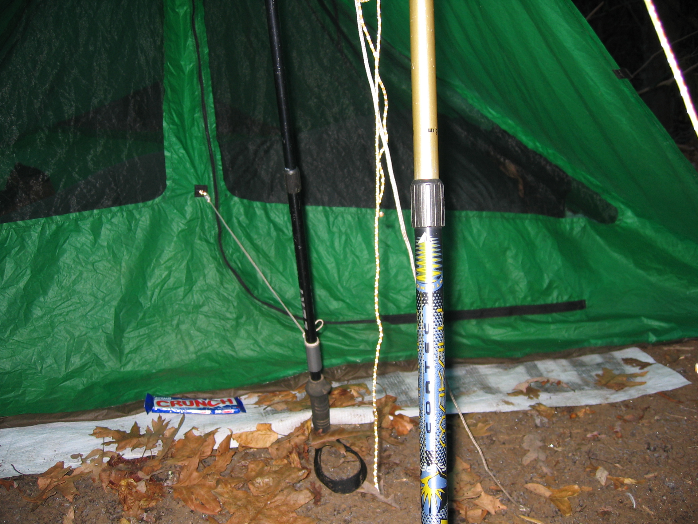Why the photo of a candy bar outside a tent? Well, that’s Green One’s tent. And cold isn’t his favorite part of the hike. So in the morning I take our food bags down from it’s hang, have breakfast and pack up. And I chuck a candy bar at the door of his tent before I hit the trail . He’ll unzip enough to snake an arm outside the tent, grab the food, and start building sugar-based energy while in the warmth of his sleeping bag! Sometime around lunch, he’ll catch up and on we’ll go.